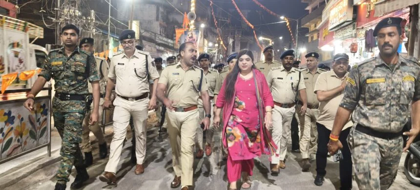 औरंगाबाद। आज जिला पदाधिकारी अभिलाषा शर्मा एवं पुलिस अधीक्षक अम्बरीष राहुल के द्वारा आगामी रामनवमी पर्व के दृष्टिगत जिले में विधि-व्यवस्था संधारण, शांति एवं सौहार्दपूर्ण वातावरण बनाए रखने के उद्देश्य से संयुक्त रूप से पैदल मार्च किया गया।